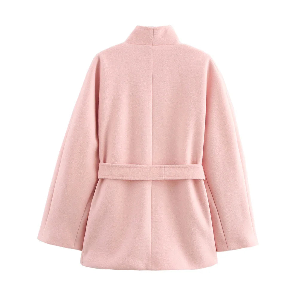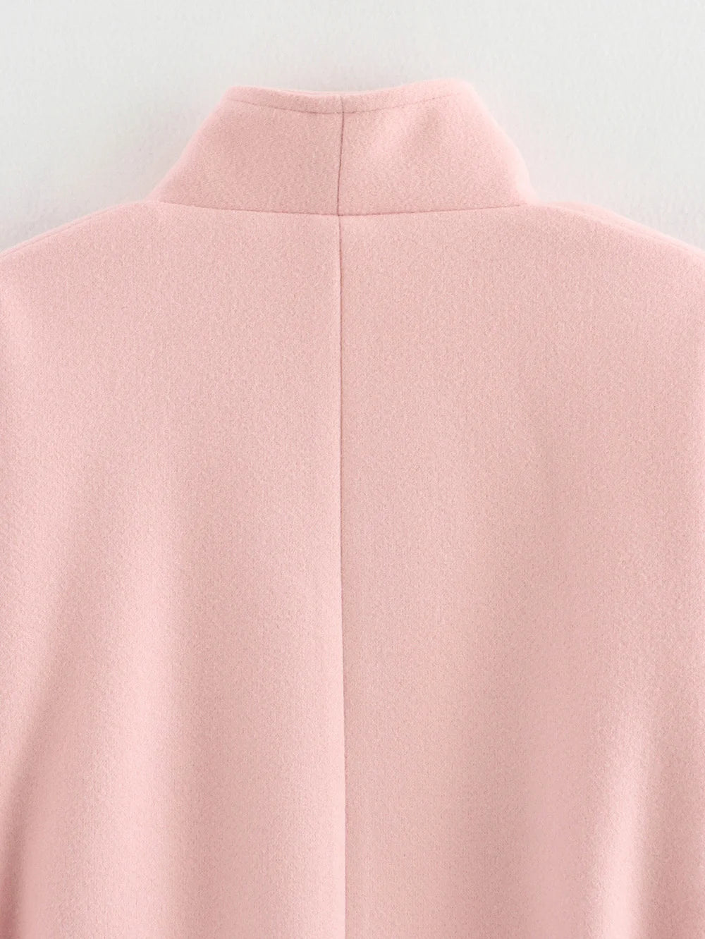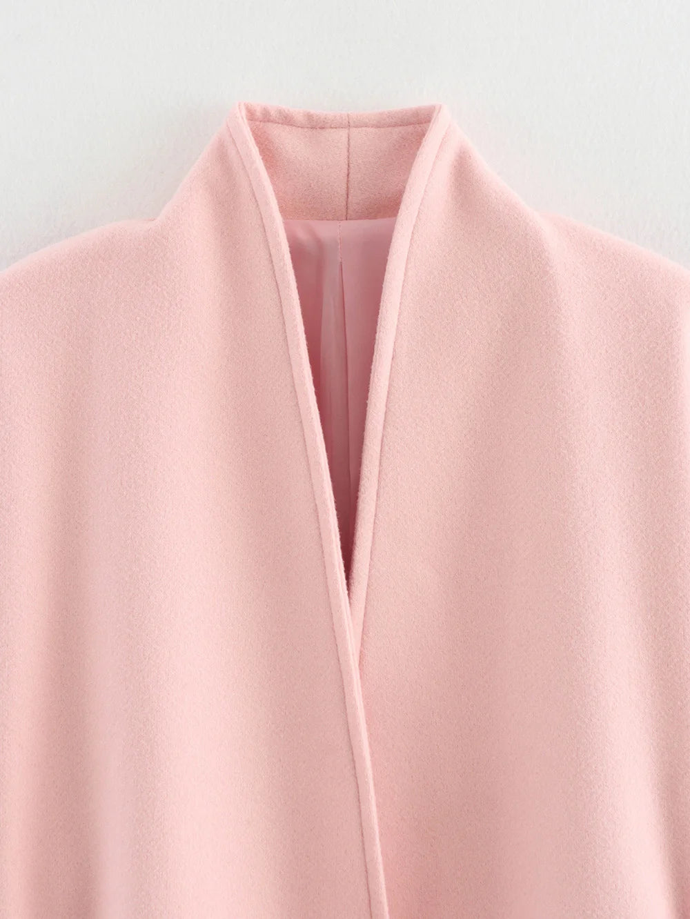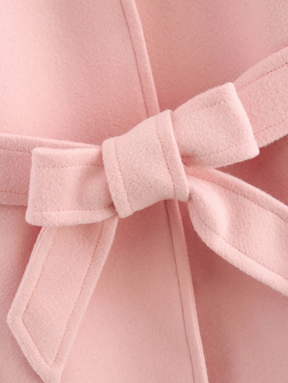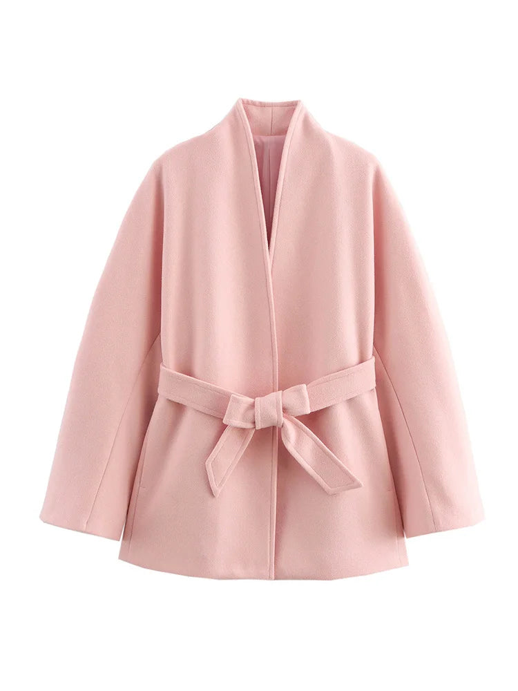 079 - Einfarbiger Schleifen-Mantel – Herbst/Winter Damenjacke