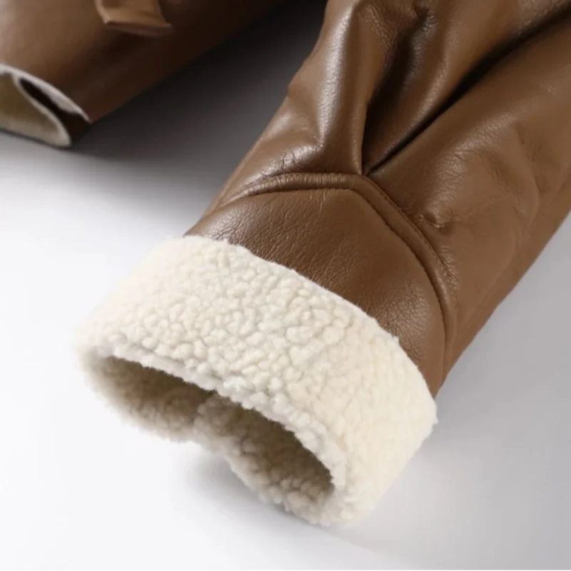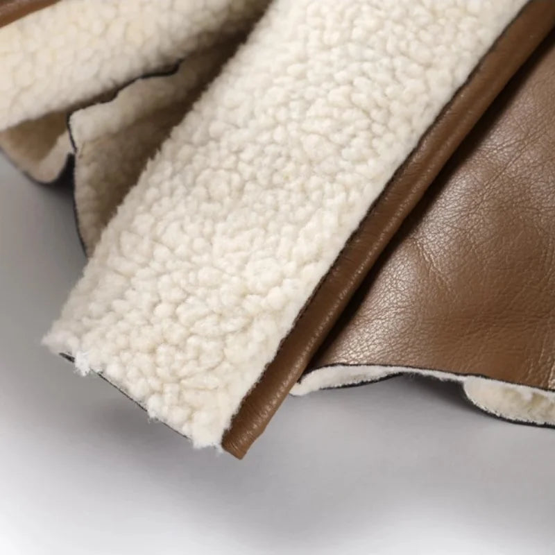 Diese kurze Wildlederjacke vereint klare Linien, hochwertige Textur und dezente Details wie Taillenschnürung und strukturierte Kragenführung.