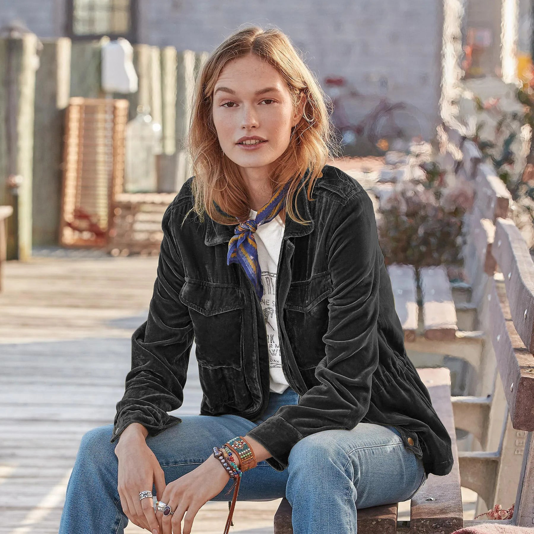 Das leichte Material sorgt für Komfort in der Übergangszeit, während der lockere Schnitt eine entspannte, elegante Ausstrahlung vermittelt.
