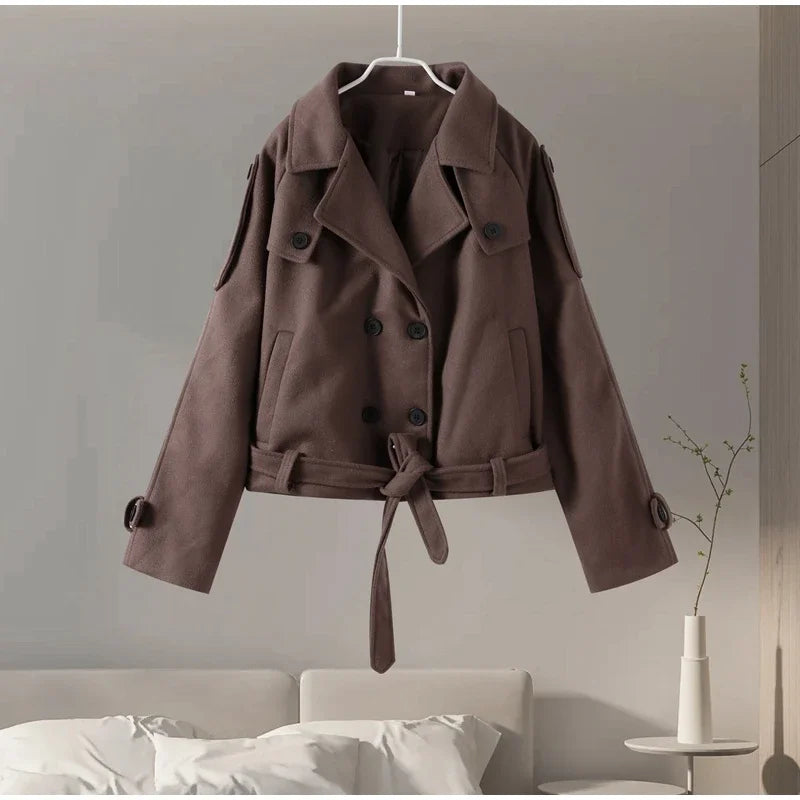 Die kurze, strukturierte Silhouette kombiniert High-Street-Design mit zeitloser Mode — perfekt für elegante Outfits, Business-Looks oder stilvolle Alltagsmomente.