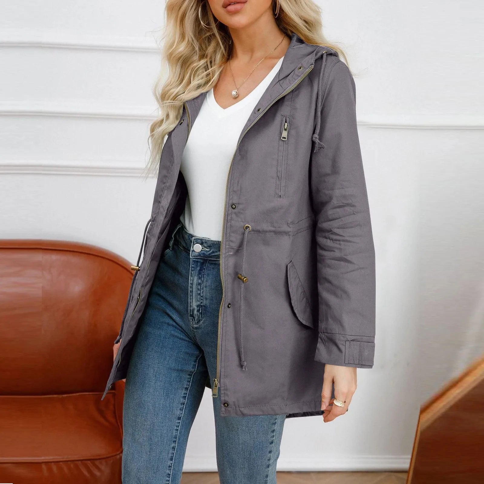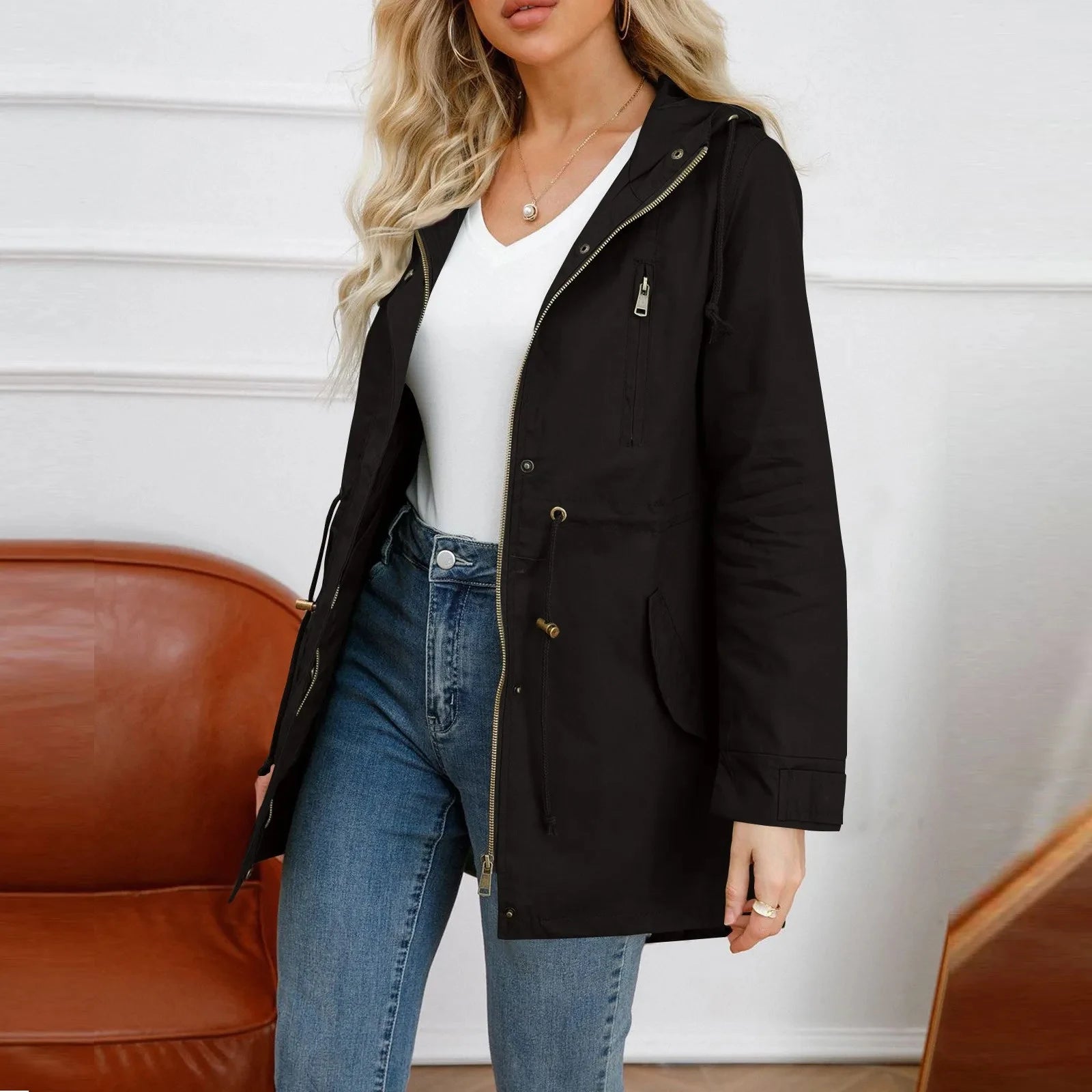 104 - Damen Trenchcoat Mit Kapuze & Taschen