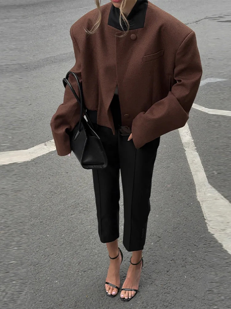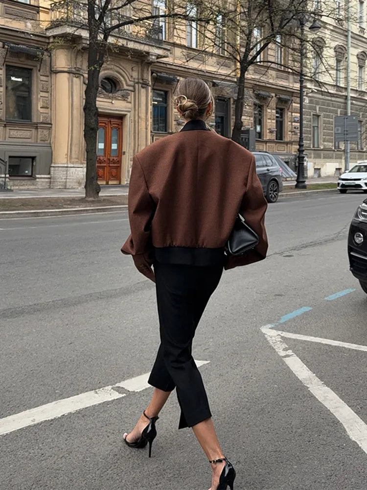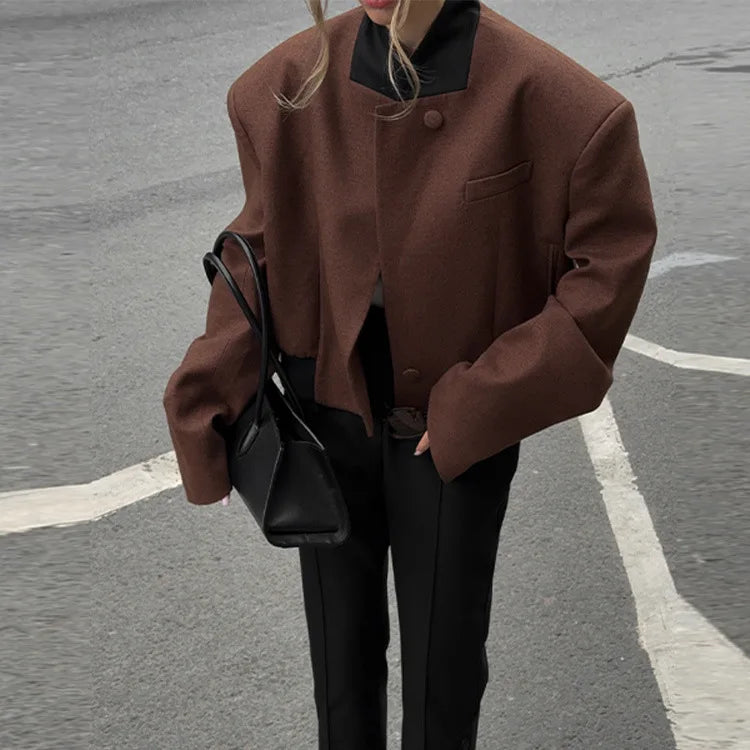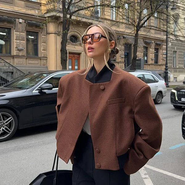 007 - Kurze Wolljacke Damen – Braun & Modern