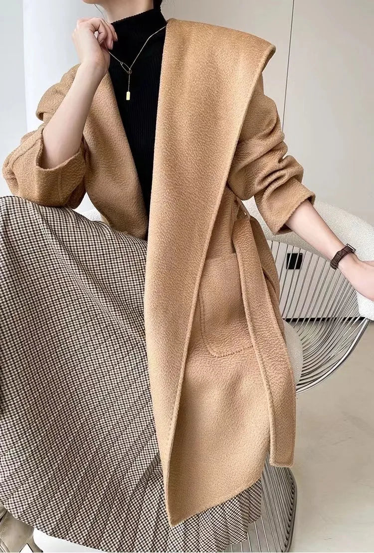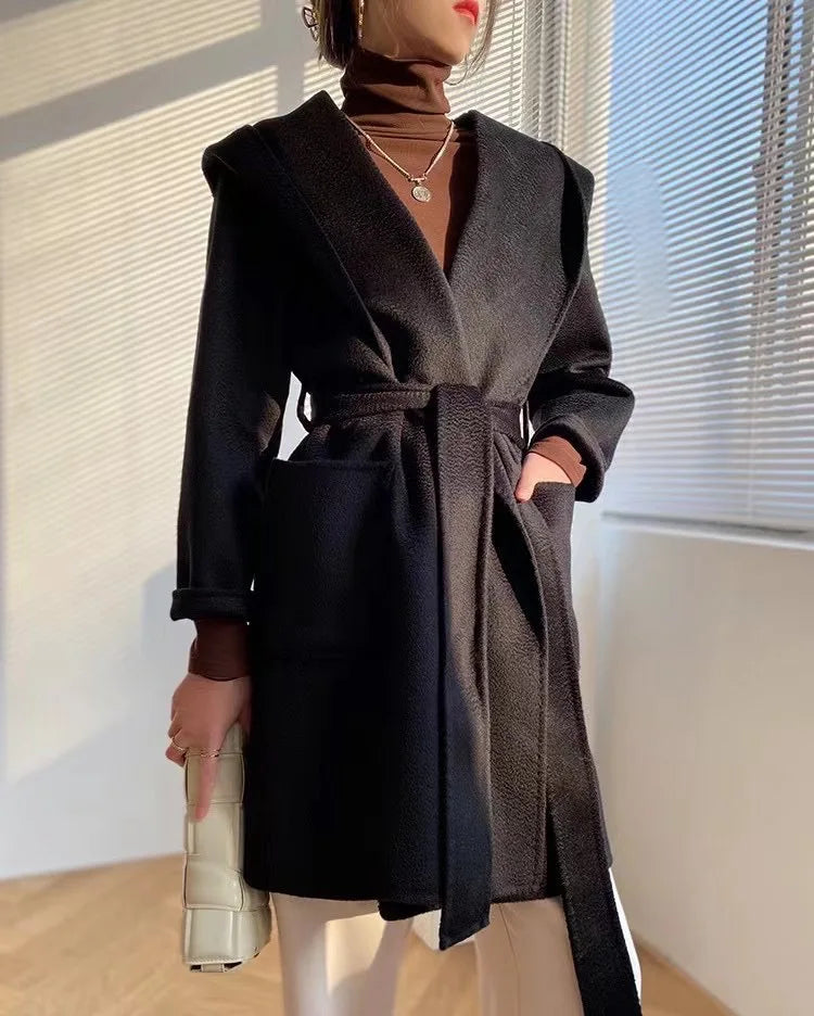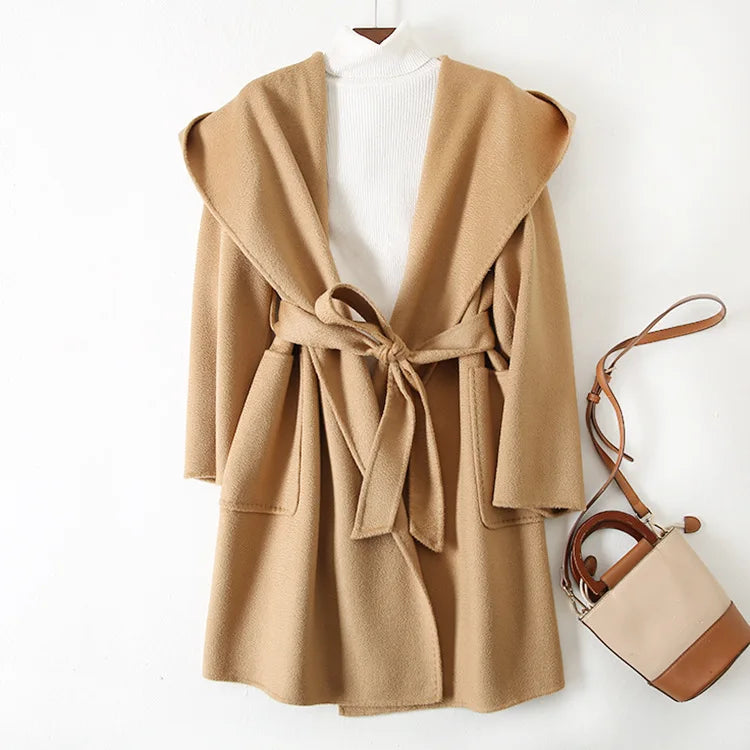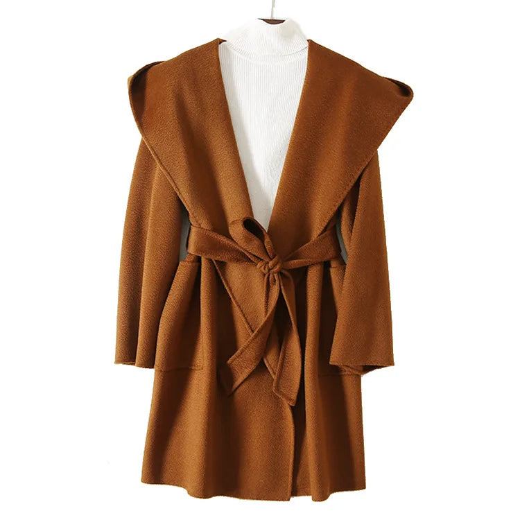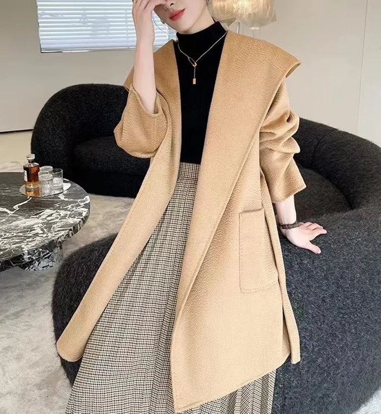 009 - Wollmantel Damen mit Kapuze – Modern & Warm