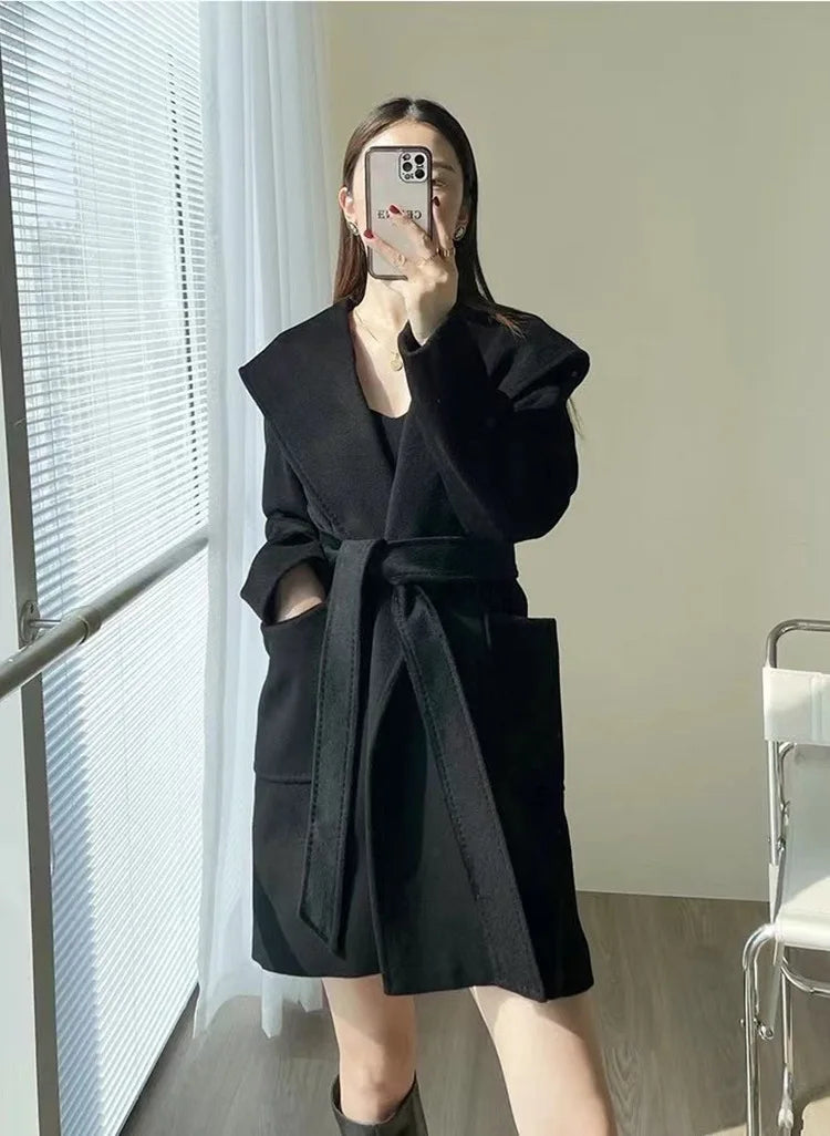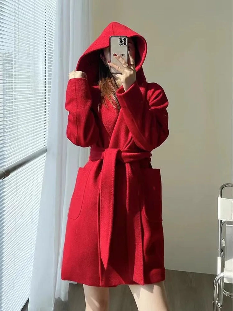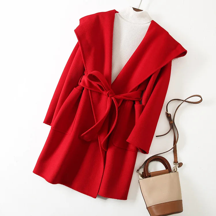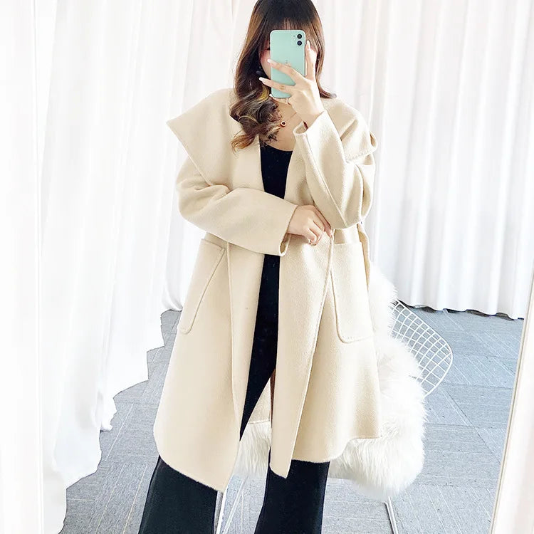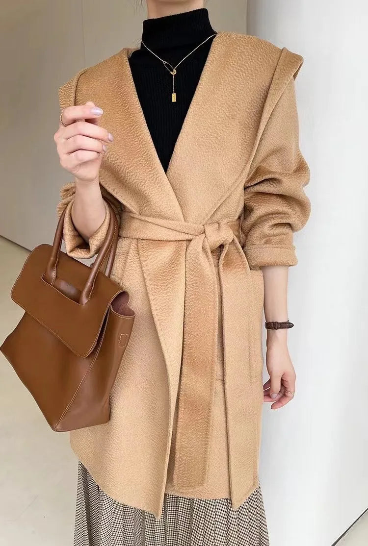 009 - Wollmantel Damen mit Kapuze – Modern & Warm