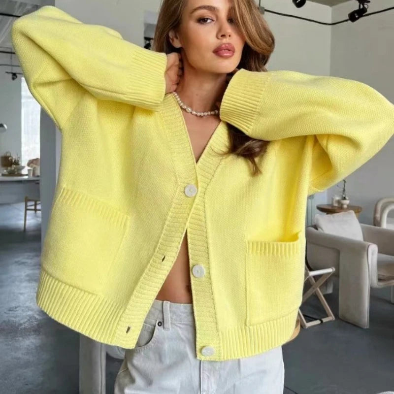 Minimalistisch, modern und unglaublich vielseitig — dieser gestrickte Cardigan verbindet Komfort mit urbanem Chic.