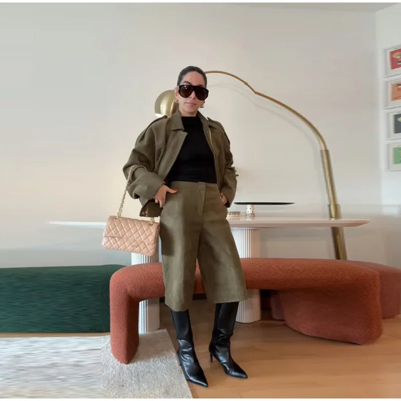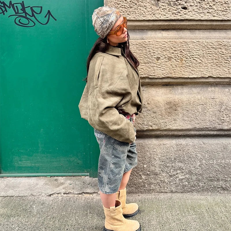 055 - Suede Bomber Jacket Damen – Modern & Stylisch