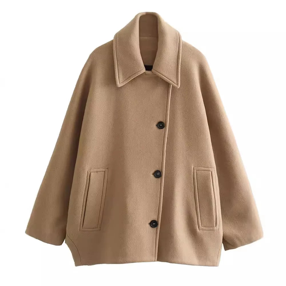 Eine moderne und elegante Damenjacke mit klassischem Reverskragen und einreihigem Design.