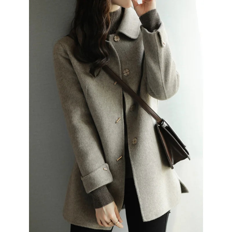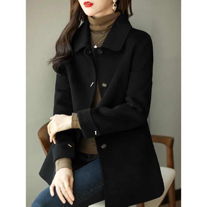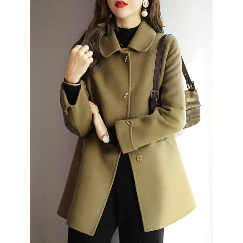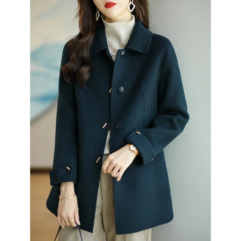 146 - Wollmantel Damen Slim Fit Mit Eckigem Kragen